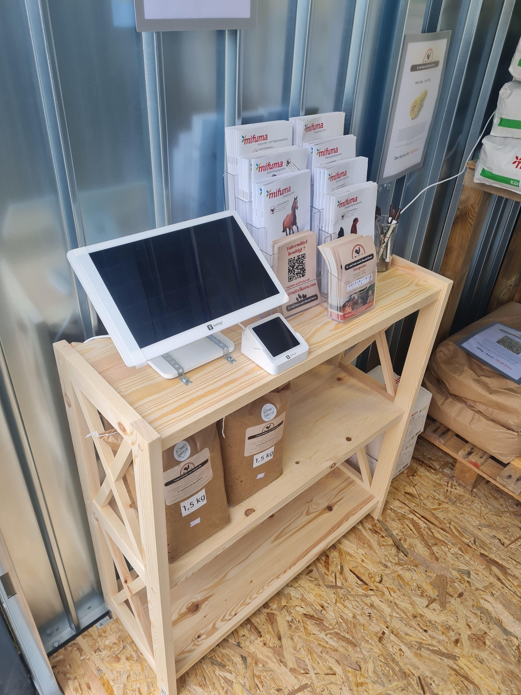 Hühner- und Pferdefutter können nun bequem und unkompliziert direkt vor Ort abgeholt werden. Zusätzlich besteht die Möglichkeit, Waren online zu bestellen und im Hofverkaufscontainer abzuholen.